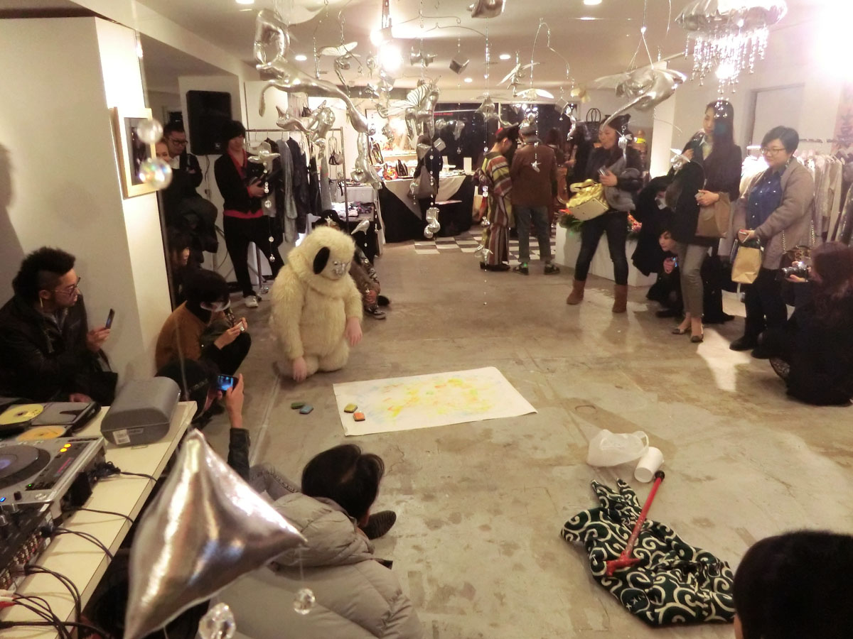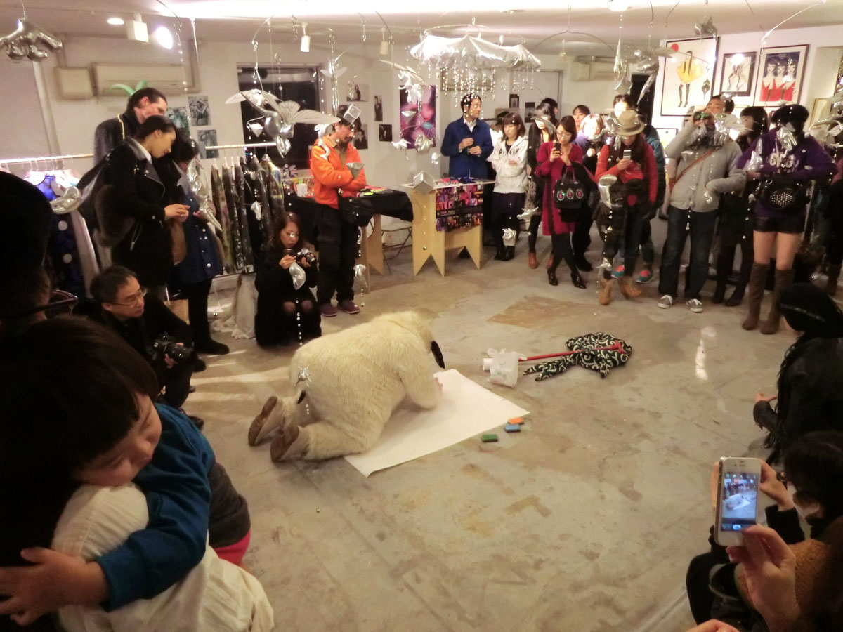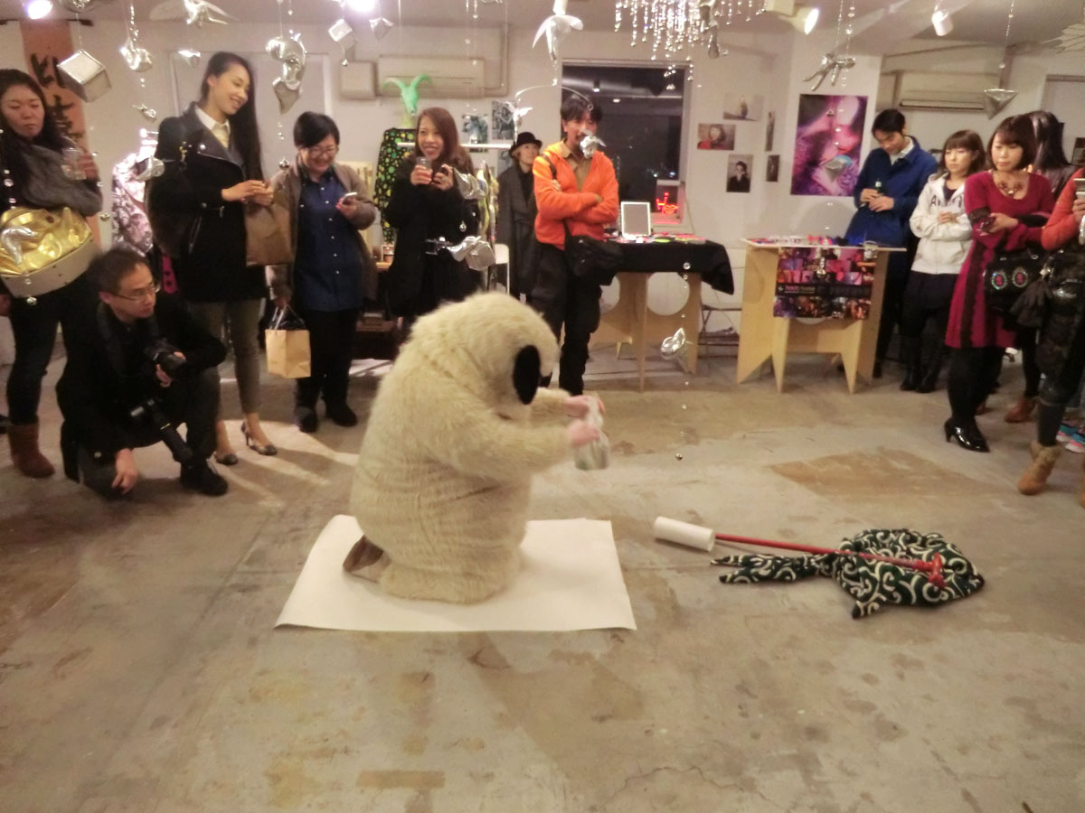 2012年11月にホテルCLASKA 8F / The 8th Galleryにて行われた、GROUP EXHIBITION KIRA KIRA TOKYO VOL.15。25日に上演されたアーティストのぎすみこさんのインスタレーションです。