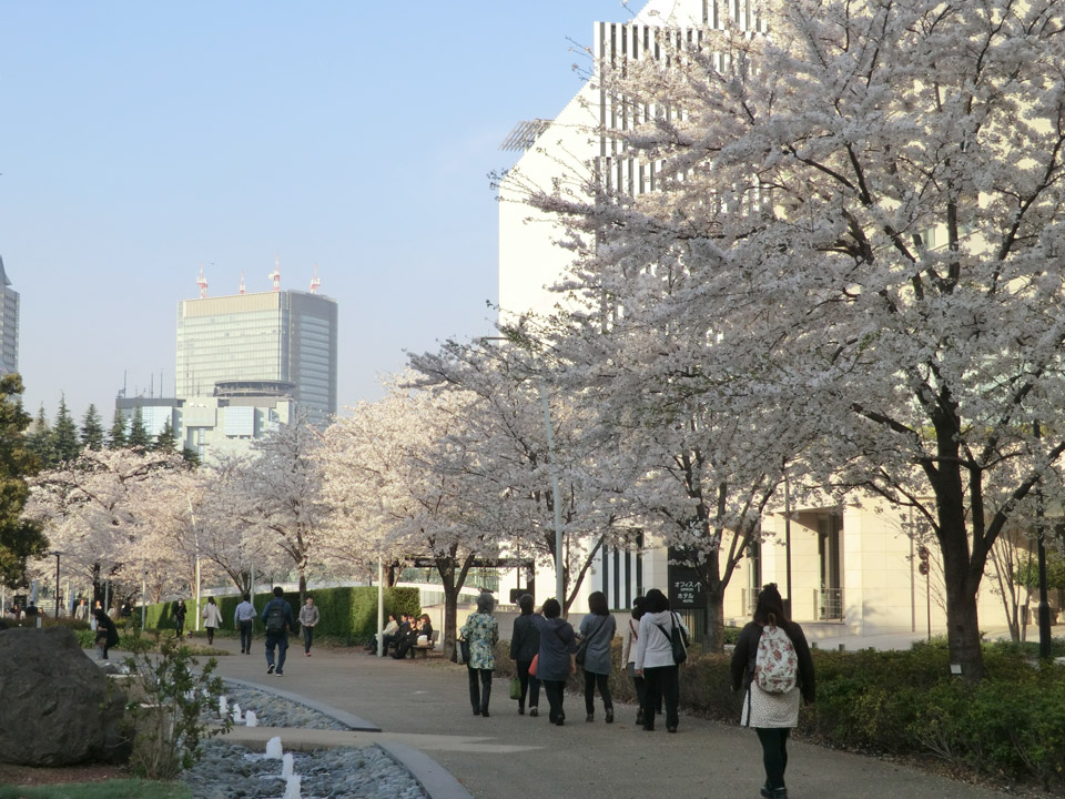 ミッドタウン北側の遊歩道。葉が出始めていたものの花は80%以上残ってました。