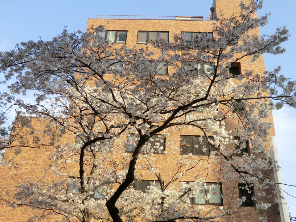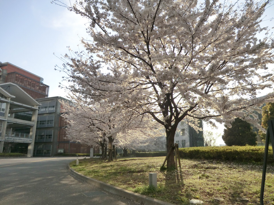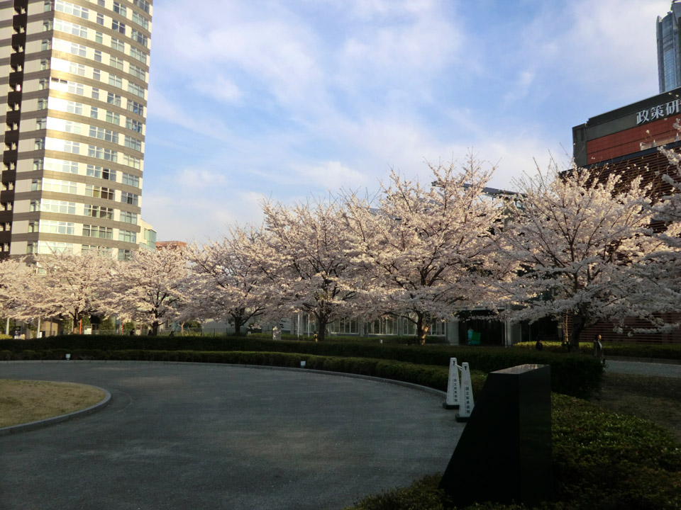 政策研究大学院大学の並木。ほぼ満開〜散り始め。